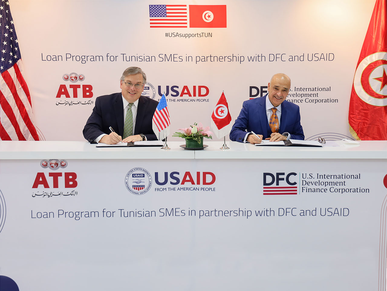 Le gouvernement des États-Unis s’engage à soutenir la réussite des petites entreprises tunisiennes, une meilleure inclusion économique, et la création d'emplois dans le secteur privé. L’accès au financement étant crucial pour la prospérité des petites entreprises tunisiennes, ce partenariat entre USAID, l’ATB et la DFC permettra d’accroitre l’accès aux prêts à des régions et à des emprunteurs qui ne peuvent pas accéder facilement aux prêts bancaires.